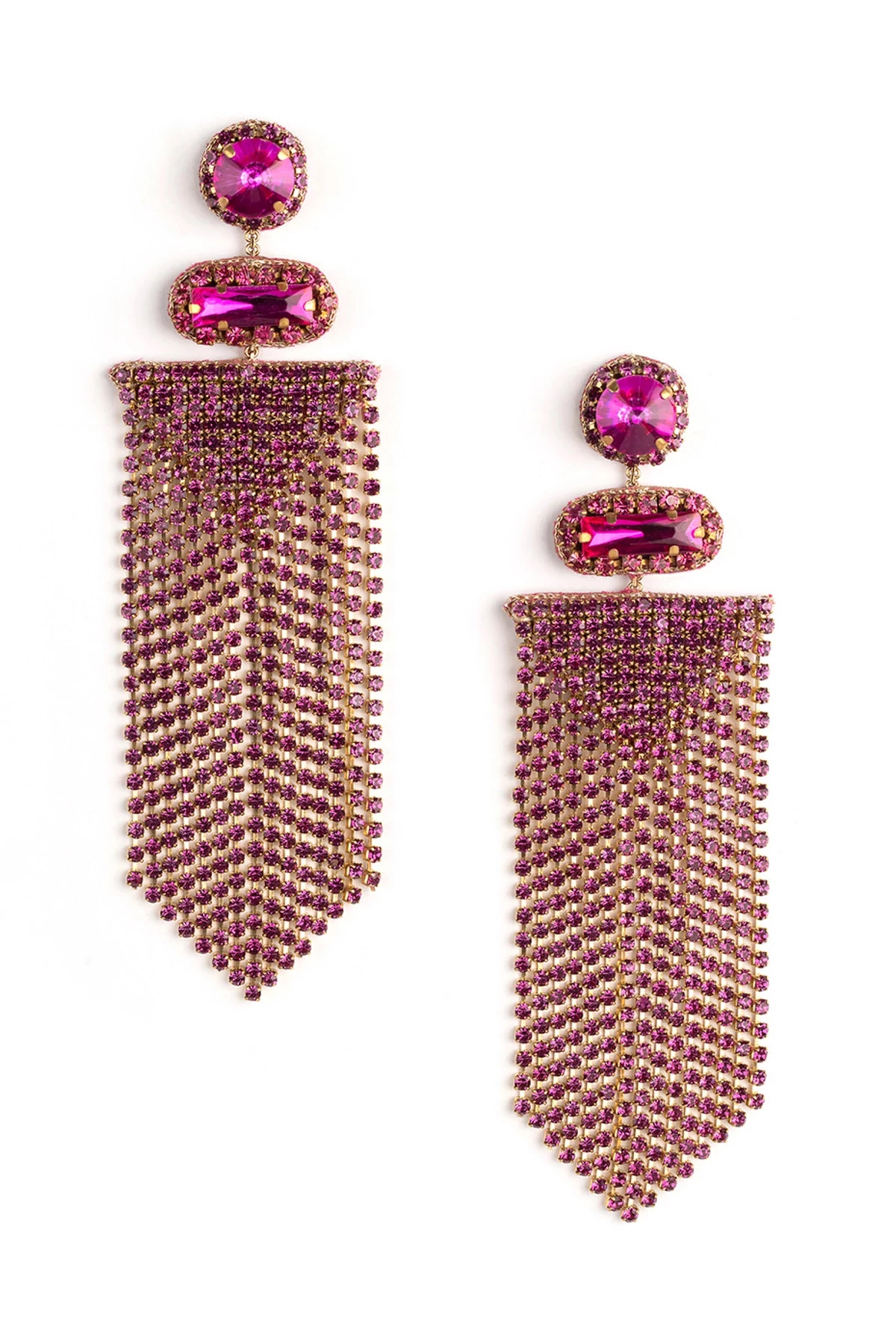 Anvi beaded earrings feature metal chain, brass components, glass stones, suede backing and stainless steel posts.