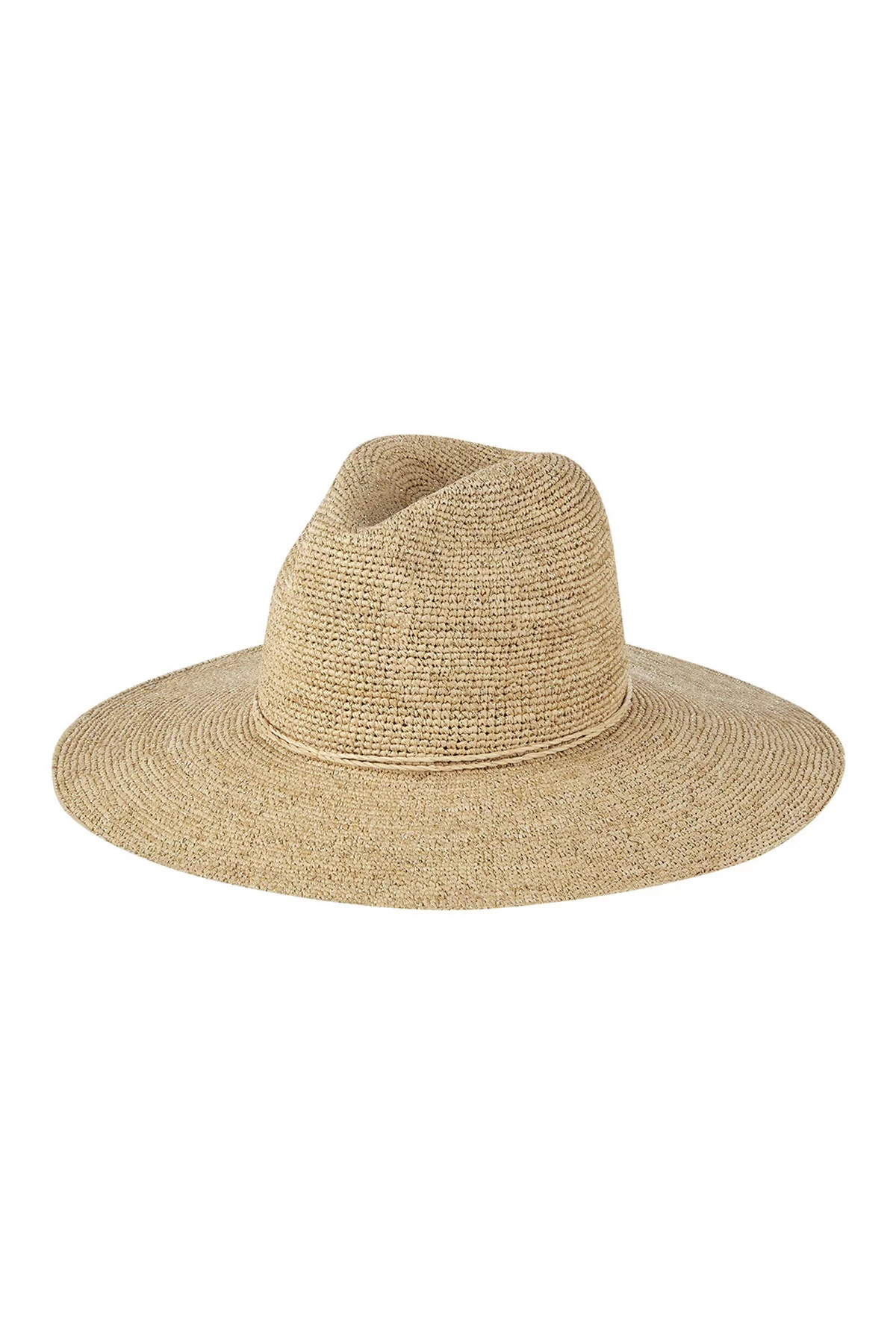 Brayden panama hat features a wide brim with a metallic thread trim.