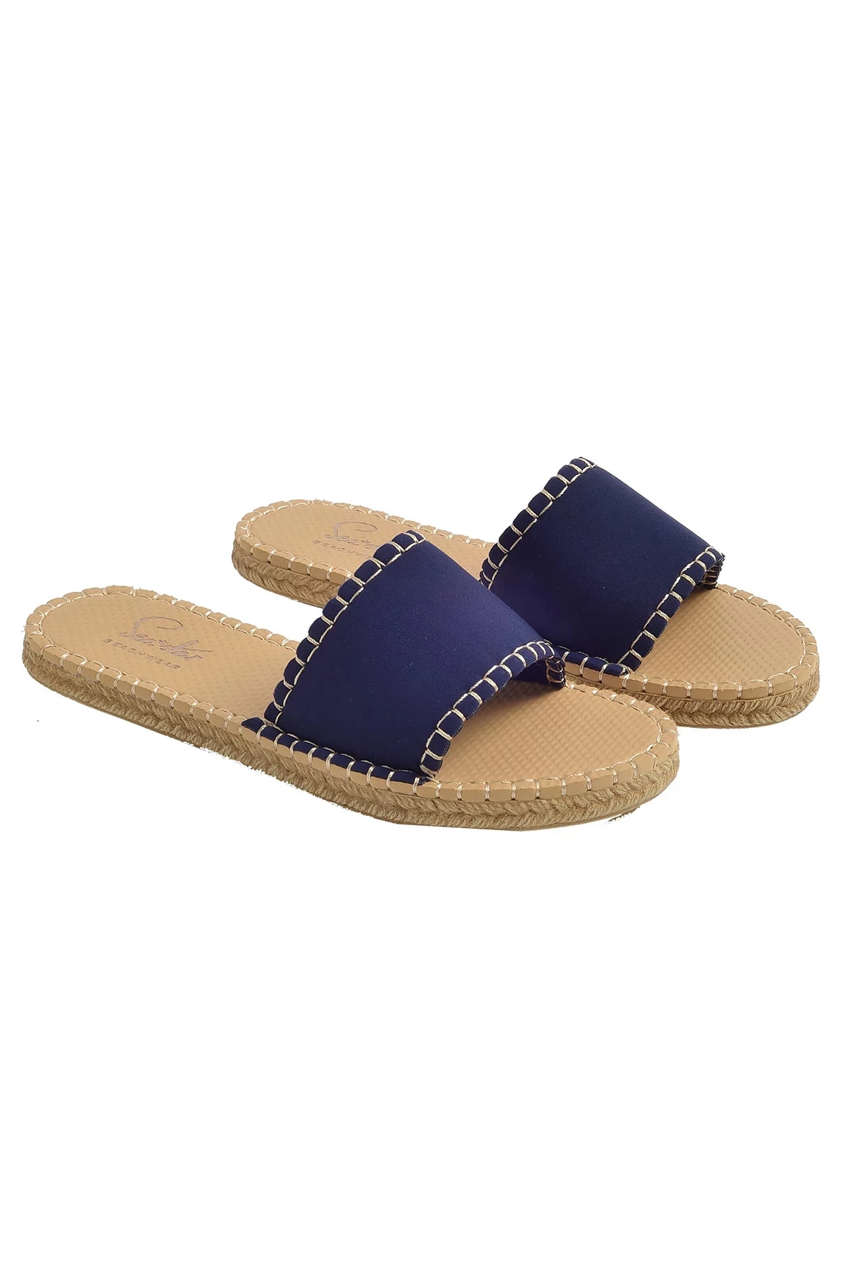 The Cabana slides feature a soft quick-drying neoprene strap that is lightweight and durable with an espadrille edge stitching for a clean and refined look, and an Eva cushioned rubber sole for maximum support and comfort combined with a non-slip non-marking sole and a hand-painted rubber “jute” for a high end finish.