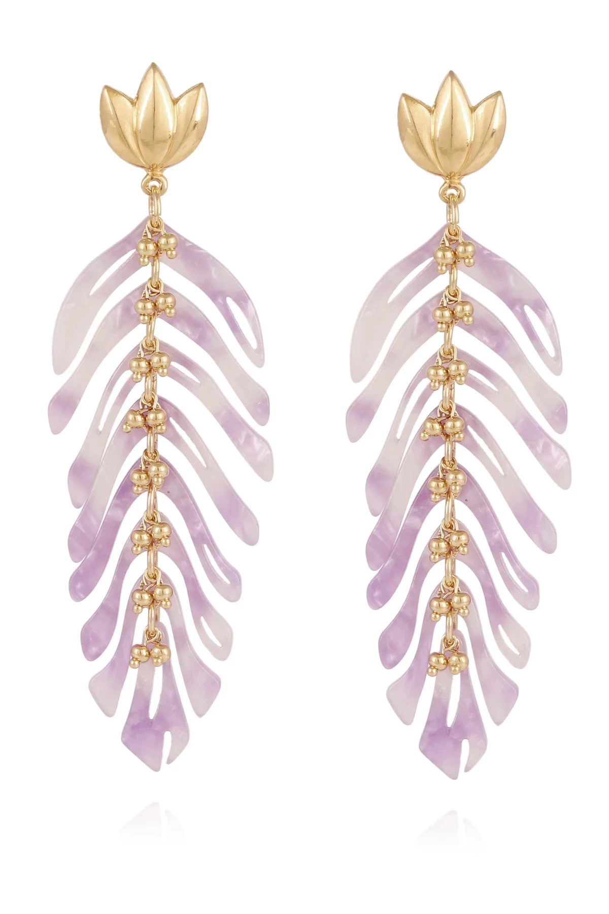 Cavallo earrings are gold plated earrings composed of an assembly of pieces finely cut in colored acetate. They are embellished with beads and golden adornments.