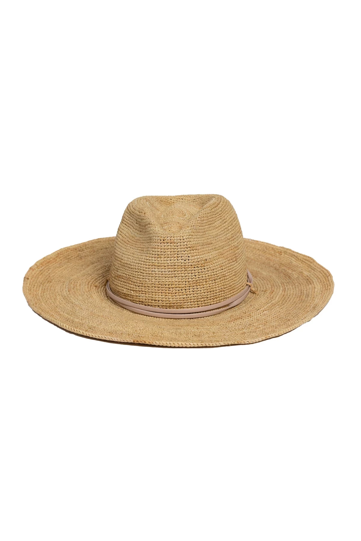 Continental hat features a raffia fabrication which is a beautiful quality straw. Each piece is hand crocheted and shows unique variations. Also includes an adjustable sweatband for a perfect fit.