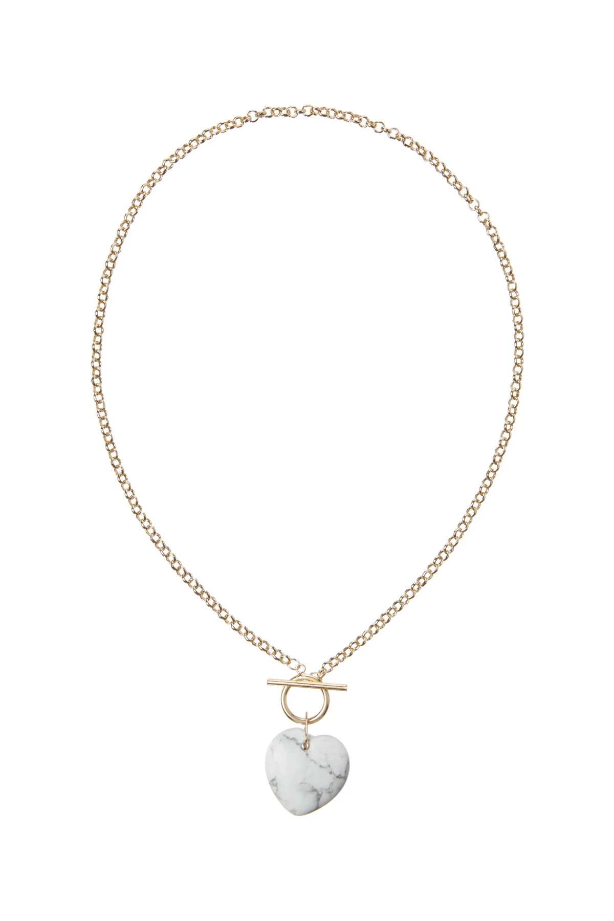The Ela Gem necklace adds a touch of femininity to your layered look with a beautiful heart shaped gemstone pendant. Toggle clasp closure.