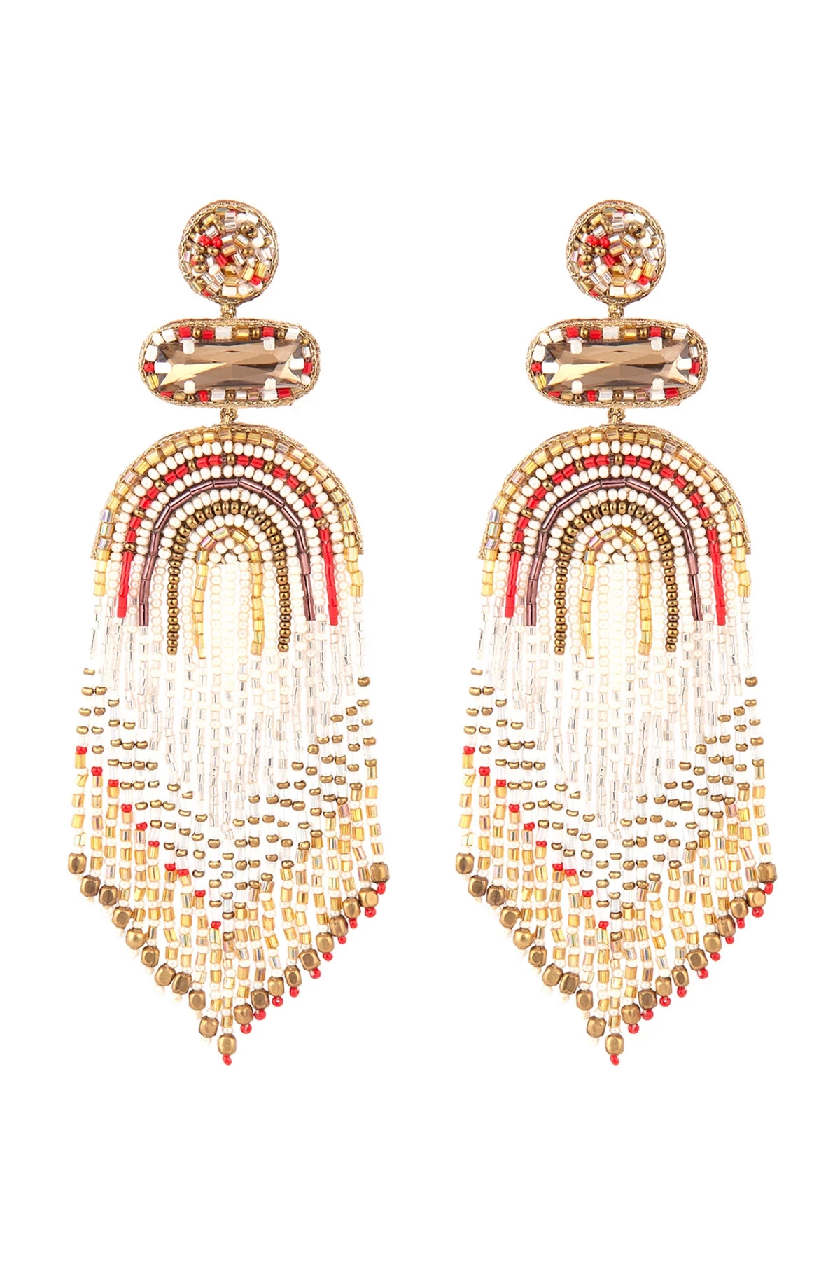 Ishani beaded earrings feature glass crystals, glass beads, and stainless steel posts.