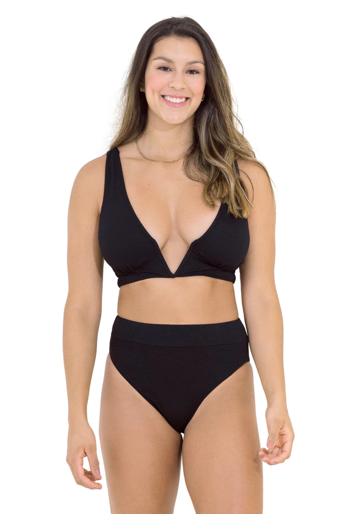 Parade triangle bikini top is a longline triangle top with a reversible floral print, a v-wire front and removable cups. Offers adjustable lace up back ties and wide shoulder straps for added support.