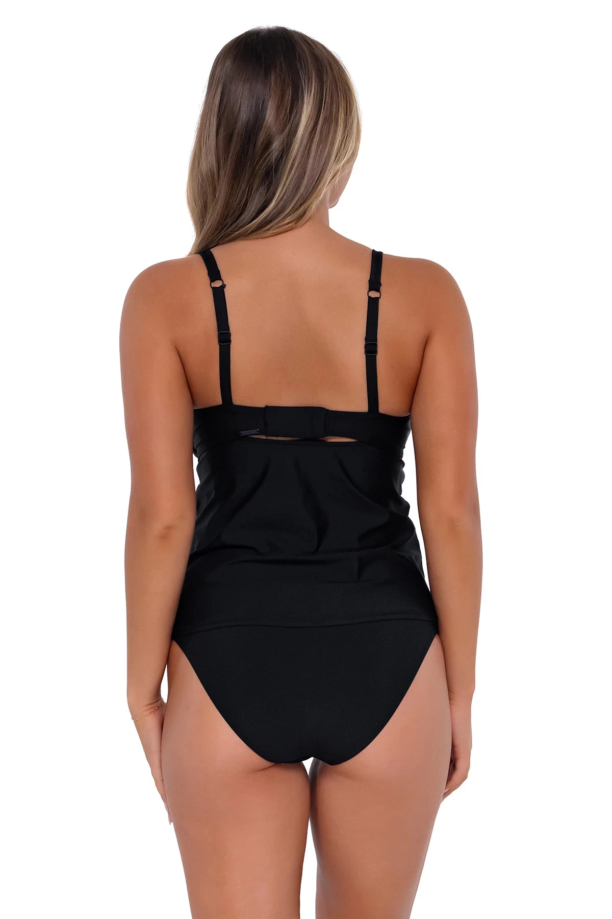The Maeve Tankini is your new cute classic. With a cinched knot, keyhole detail, and adjustable bust coverage, this top is a favorite. It features removable cups, adjustable straps, a hidden bra hook and eye closure, and an underwire. Its relaxed fit provides just enough shape without being form-fitting.