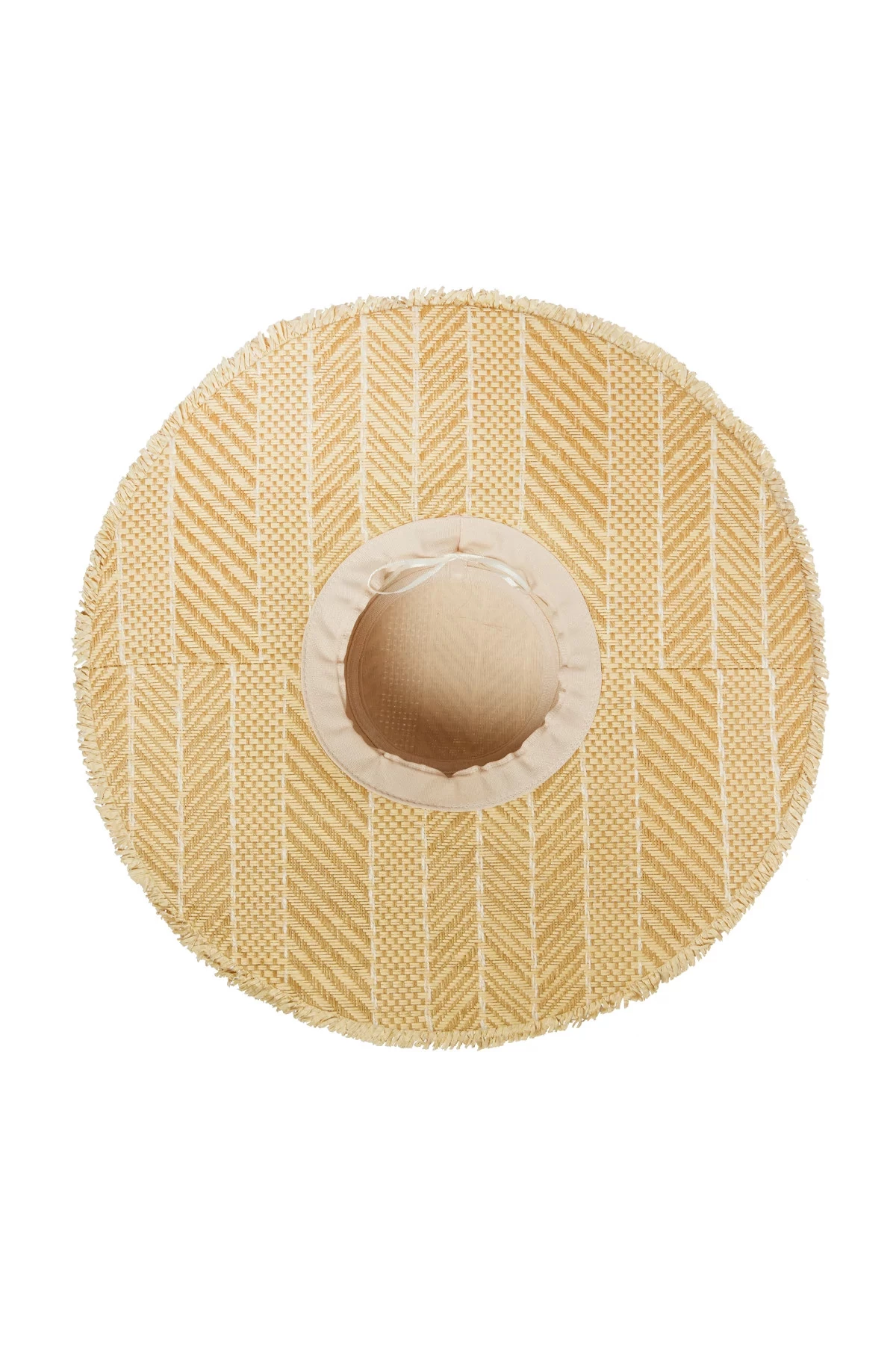 Wide-brimmed natural sun hat featuring an alternating textured pattern. Offers an adjuster on the hat’s interior.