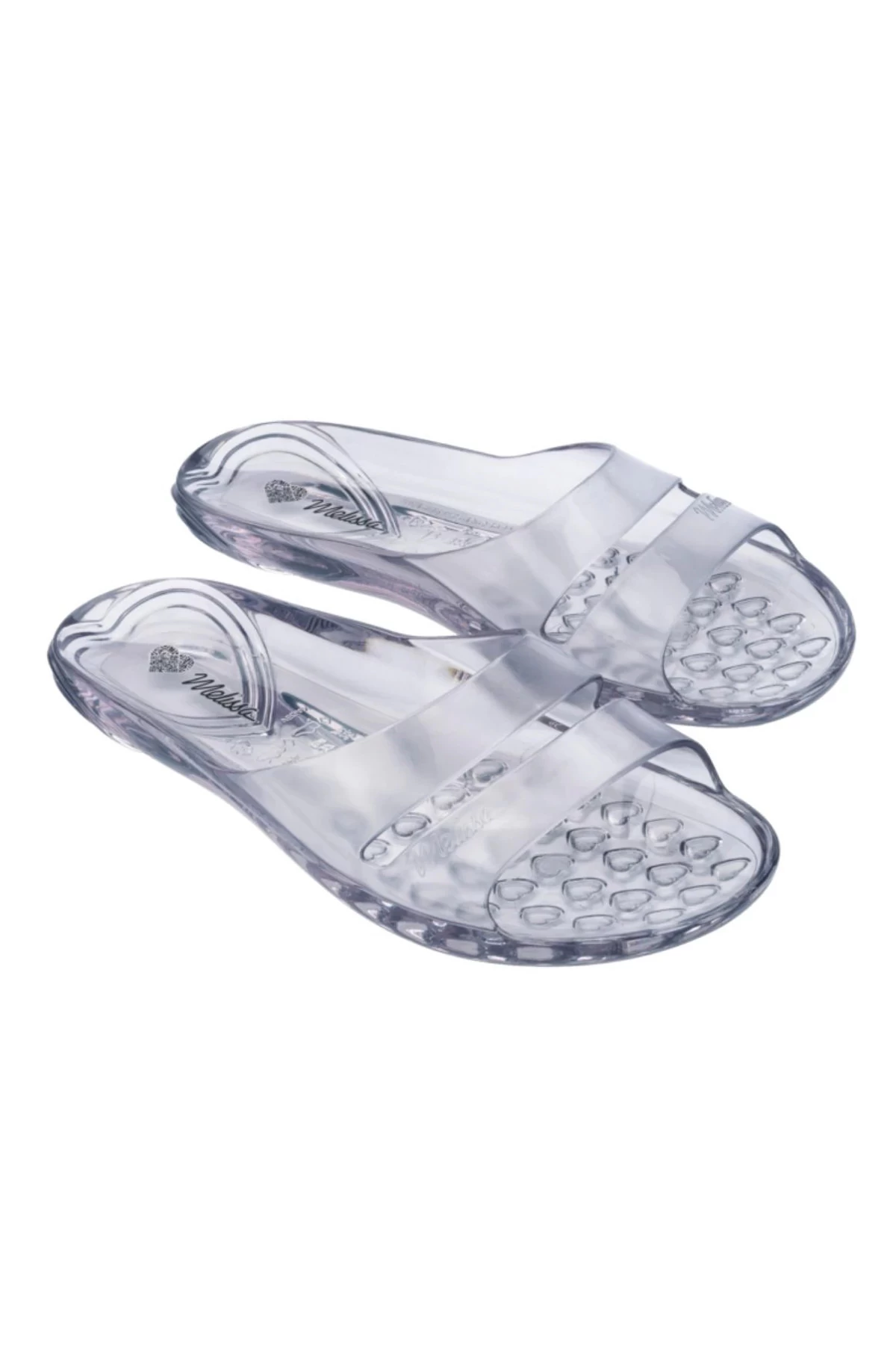 The Real Jelly Slide is a streamlined, futuristic sandal made out of a single monoblock of sustainable jelly. Bubble gum scented.